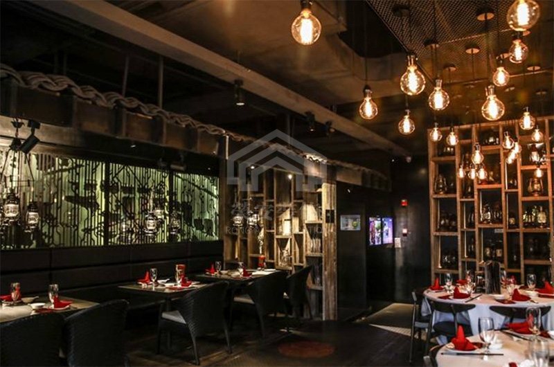 荣案设计师为川菜馆设计装修精心挑选的木质方桌、小方凳,配以穿梭于桌台间的古装堂倌;老宅深院食肆摊档,拙朴雅致相映成趣,恍如清末民初之酒馆、街巷市井,川菜馆设计装修到处洋溢着四川慢生活的的那种浓郁的都市文化底蕴和中式风格。